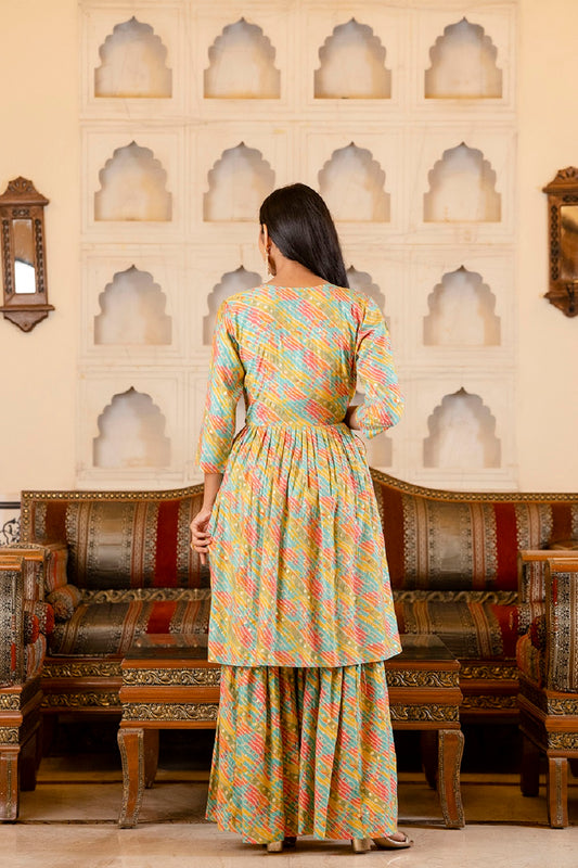 Multicolor Kurti With Plazo Dupatta Set