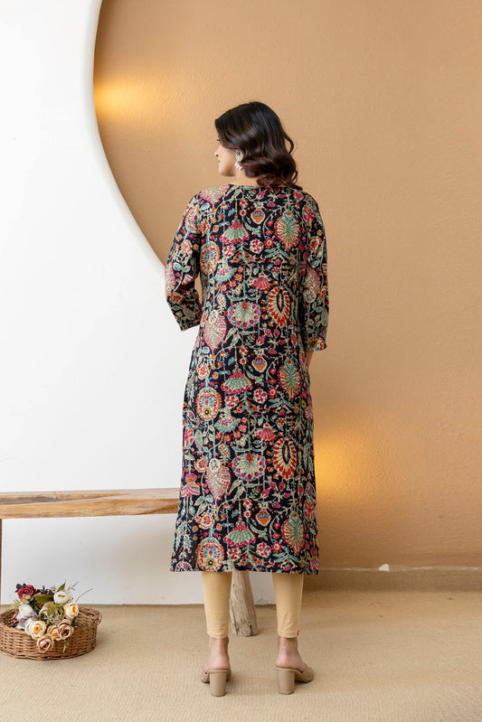 Black Rayon Straight cut kurti
