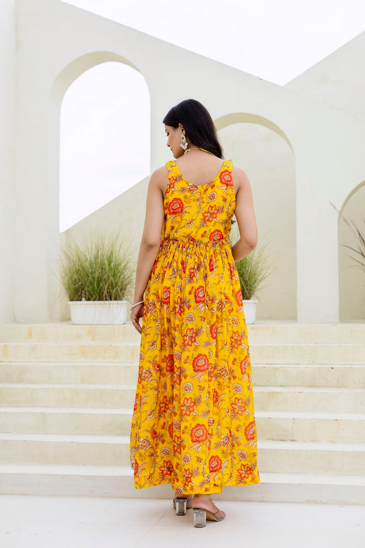 Yellow Chinon Frock Kurti 3 Pieces Set
