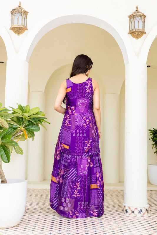 Purple Chinon Skirt Kurti 3 Pieces Set