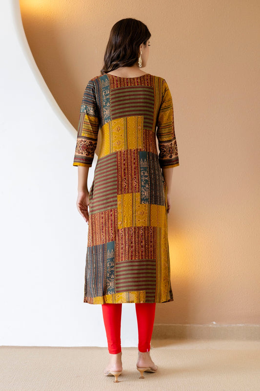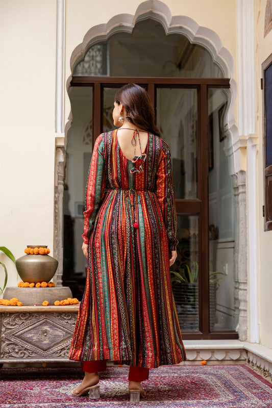 Multicolor Chinon Frock Kurti 3 Pieces Set