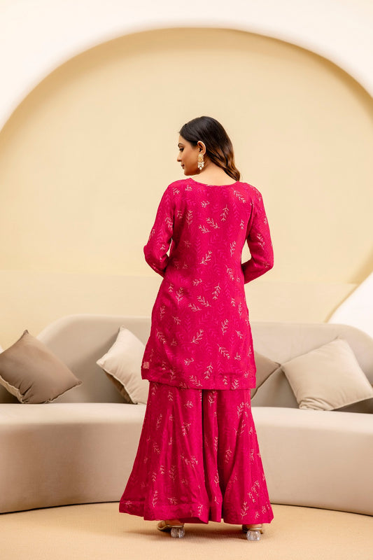 Dark Pink Chinon Short Kurti 3 Pieces Set