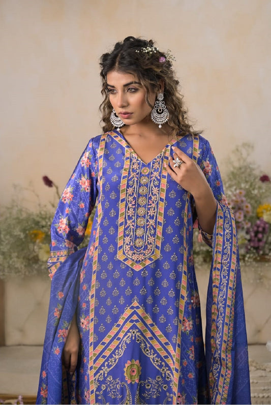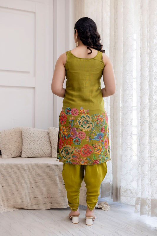 Mehandi Green Chinon Kurti 3 Pieces Set