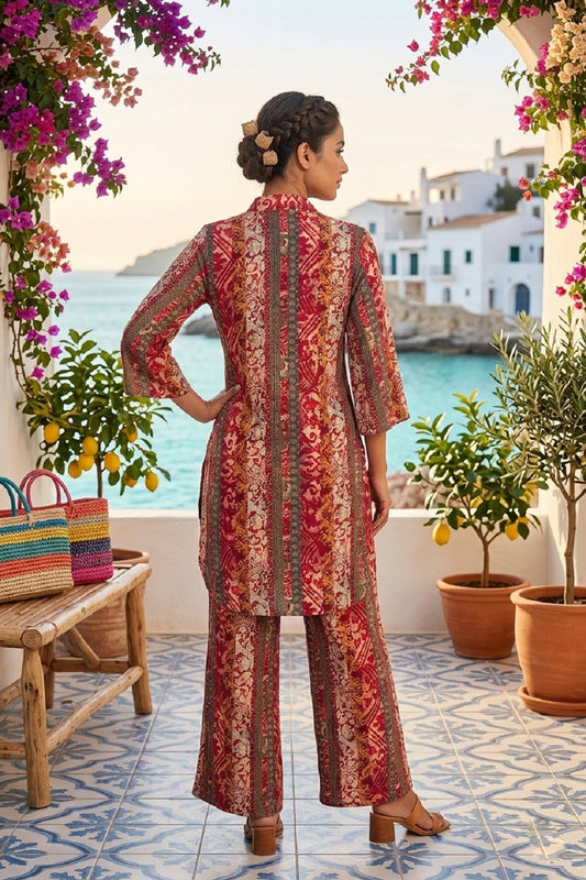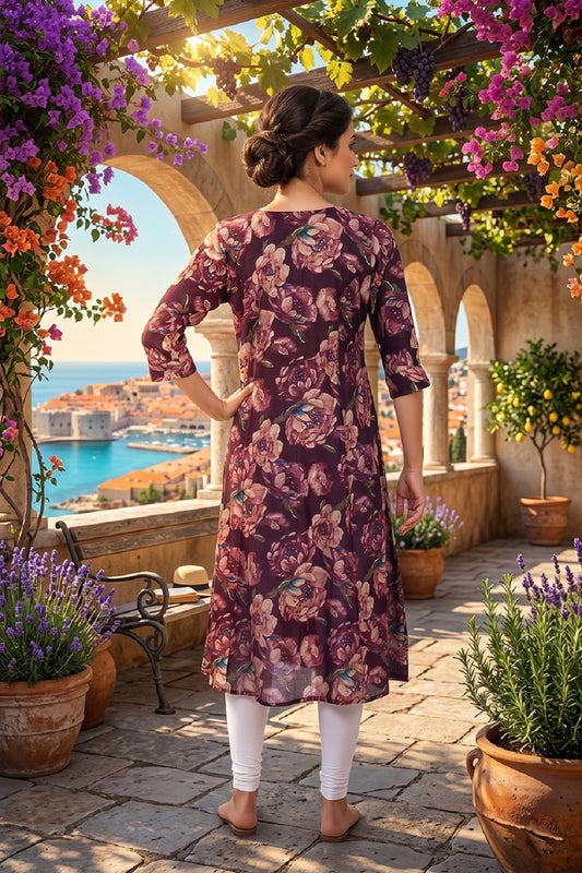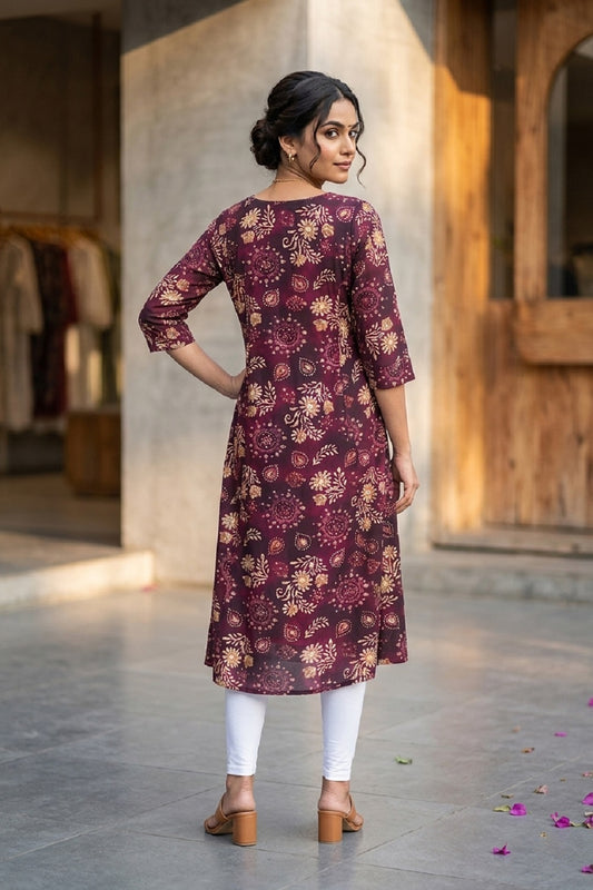 Maroon Cotton Kurti Plazo 2 Pieces Set