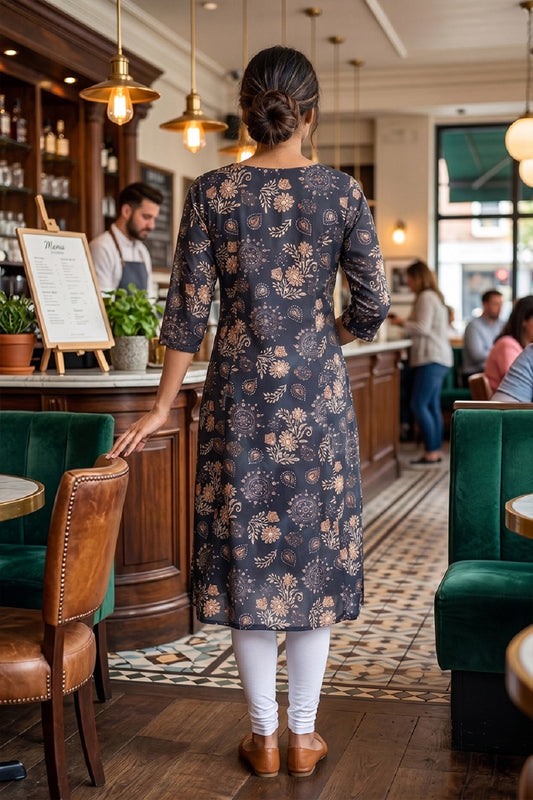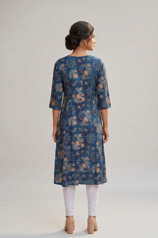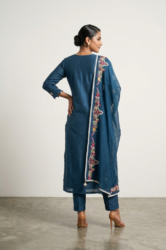 Peacock Blue Silk Kurti Pant 3 Pieces Set