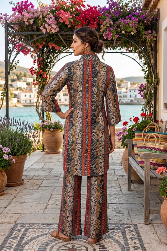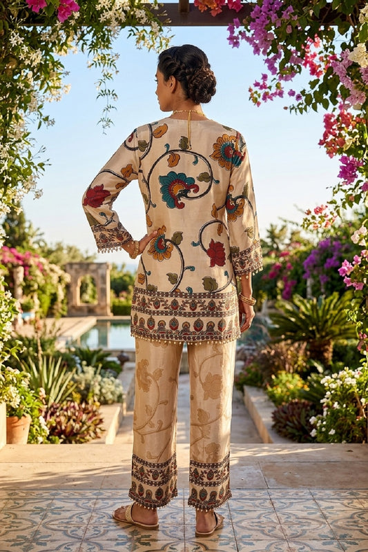 Buff Crepe Kurti Plazo 2 Pieces Set