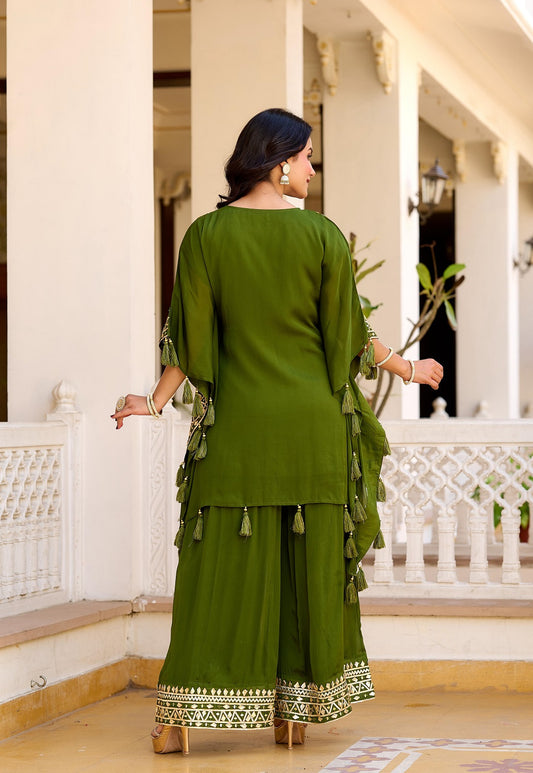 Mahendi Green Chinon Kaftan 3 Pieces Set