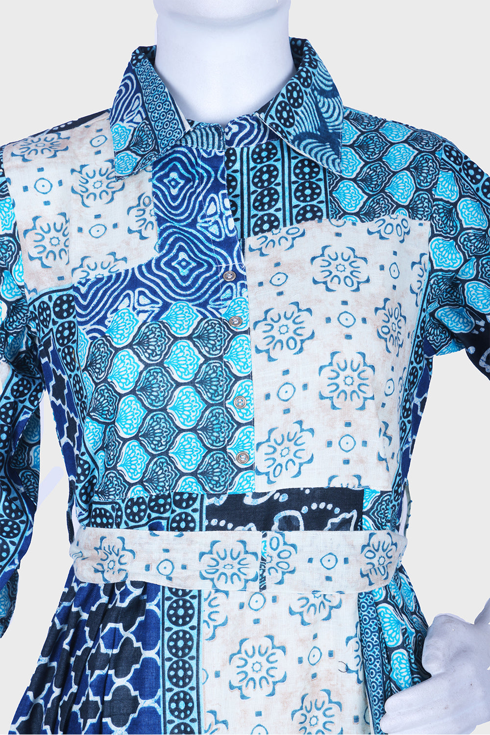 This Rama Green A-line frock kurti is made of cotton fabric to keep you comfortable all day. It features a smart Chinese collar, Long 3/4 sleeves, and beautiful printed work.