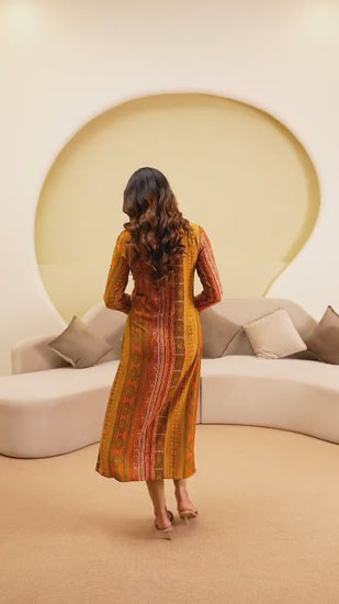 Musterd Partyqueen Handwork Pattern Printed Kurti. This Pattern Is Made In Rayon Fabric. Handwork Pattern, Round Neck Collar Type And 3/4 Sleeves Pattern.